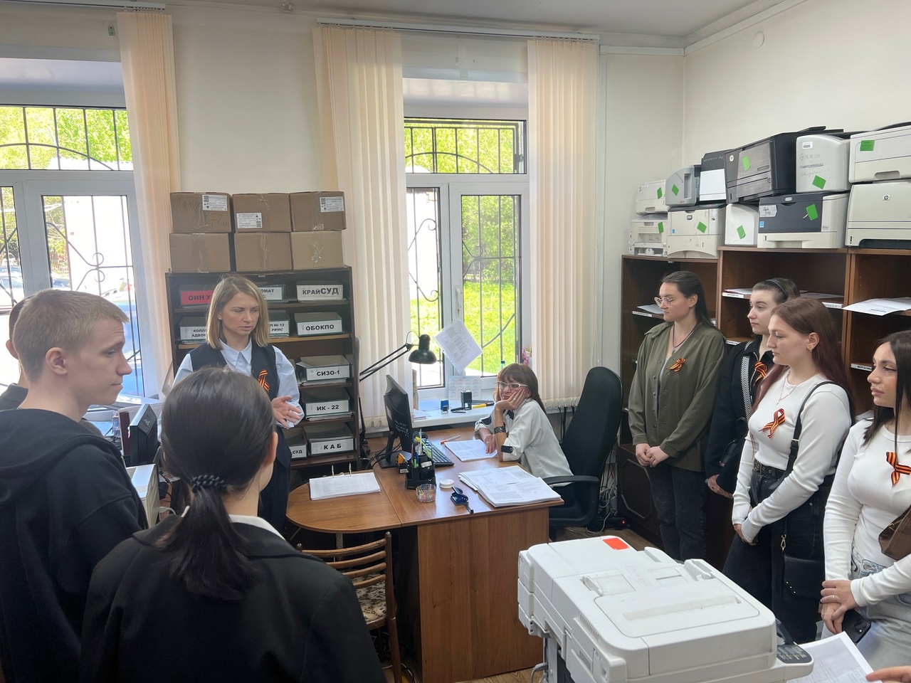 14 мая 2025 года в Свердловском районном суде г. Красноярска состоялся профтур для студентов 4 курса юридического института ФГБОУ ВО «Красноярский аграрный университет», посвященный 80-ой годовщине Победы в Великой Отечественной войне 1941-1945 годов, организованный Красноярским региональным отделением ООО «Российское объединение судей». В ходе профтура заместитель председателя суда Золототрубова М.В. ознакомила студентов с историей суда, а также рассказала о родственниках судей и сотрудников аппарата Свердловского районного суда г. Красноярска героях войны и трудового фронта, сведения о которых размещены на стенде в холе здания суда. Студентам подробно рассказано о врученных орденах и медалях участникам Великой Отечественной войны, в том числе истории их учреждения, статусе каждой награды и критериях награждения. Заместитель председателя суда Золототрубова М.В. довела до сведения студентов систему судов общей юрисдикции, виды судопроизводства и полномочия, выполняемые государственными гражданскими служащими в судебной системе. Кроме того, студенты поприсутствовали при рассмотрении судьями суда гражданского и уголовного дела, наглядно увидев все стадии судебного разбирательства. Также, в ходе экскурсии студенты смогли пообщаться с сотрудниками, осуществляющими прием входящей и отправку исходящей корреспонденции суда, узнать о количестве поступающей и подлежащей отправке корреспонденции. Начальники отделов судопроизводства по гражданским, уголовным и административным делам рассказали о порядке поступления дел в суд, сроках исполнения судебных актов, а также о требованиях, предъявляемых к сдаче дел в отдел судебного делопроизводства. Архивариус суда ознакомил студентов с архивным помещением, сроками хранения и уничтожения судебных дел. По завершению экскурсии, студенты изъявили огромное желание прийти и попробовать себя в должности секретаря судебного заседания и помощника судьи, пройдя стажировку у специалистов суда.