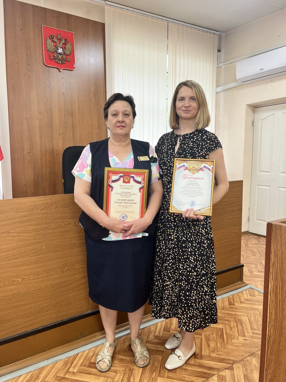 вручила благодарственное письмо председателя суда и почетную грамоту